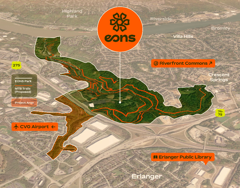 Eons Adventure Park is an evolving destination within Erlanger that celebrates exploration, nature, and connection. Designed to unfold over time, Eons will feature trails, play spaces, and natural amenities that invite people of all ages to get outside and experience the outdoors together.