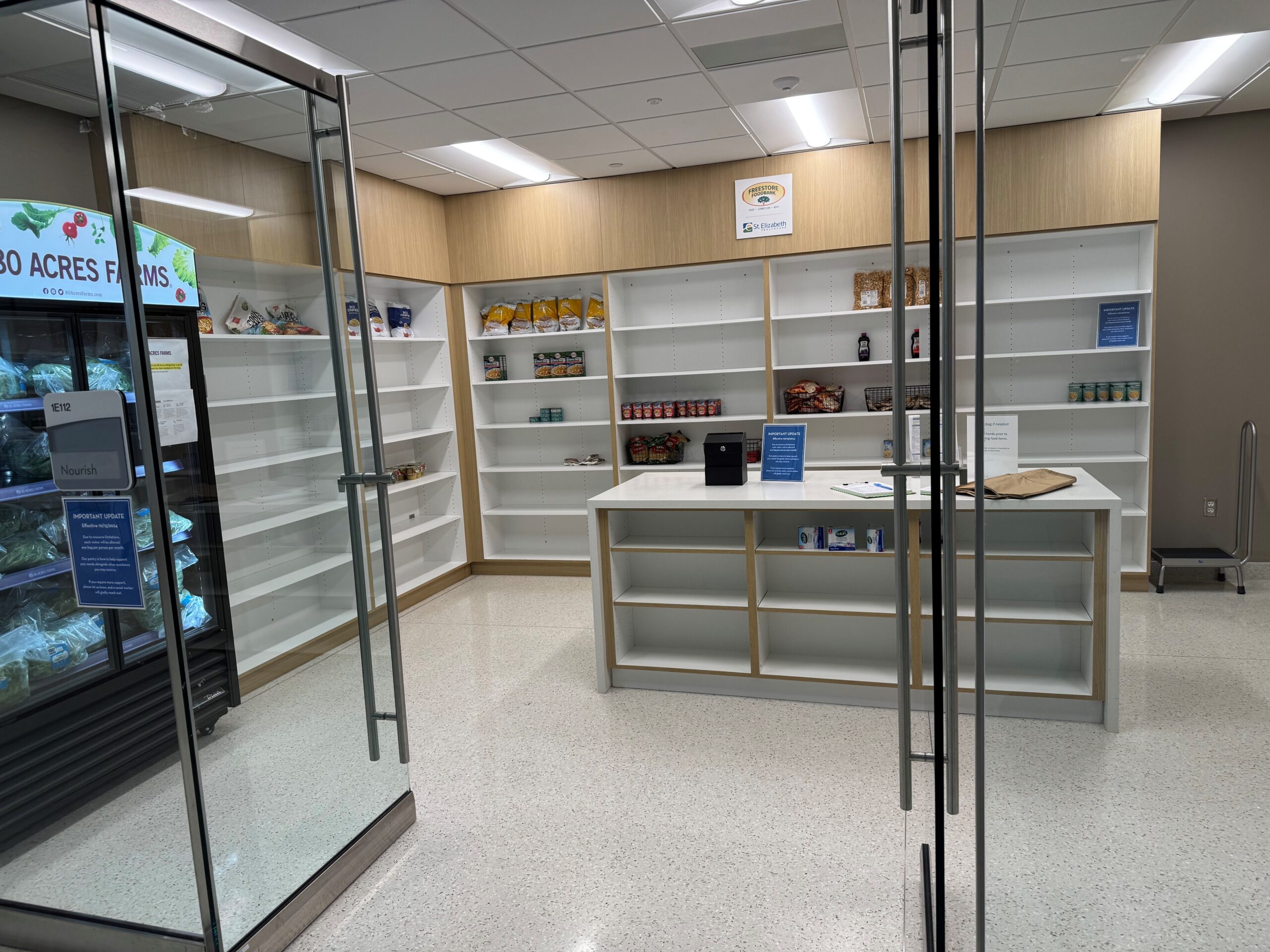 A cancer diagnosis upends life, leading patients to reallocate resources from essentials like food. The American Cancer Society determined that 1/2 of all people with cancer experience financial distress and have to decide between food or care. The Nourish Food Pantry at St. Elizabeth plays a vital role in supporting individuals who experience food insecurity, particularly those managing chronic illnesses and undergoing medical treatment. Through community partnerships and donations, the pantry can provide produce, proteins, and other healthy staples to those in need. Since opening in 2023, the pantry has provided more than 77,000 pounds of food, more than 64,000 meals, and fed more than 11,000 people.